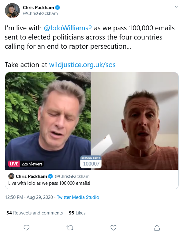 Chris Packham and Iolo Williams live on Twitter as the counter passed 100,000 e-actions a little while ago.