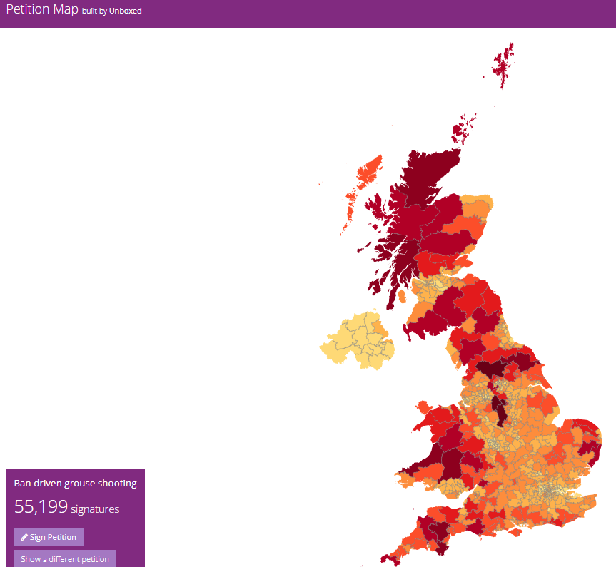 Our Ban Driven Grouse Shooting petition is flying with over 55,000 signatures.