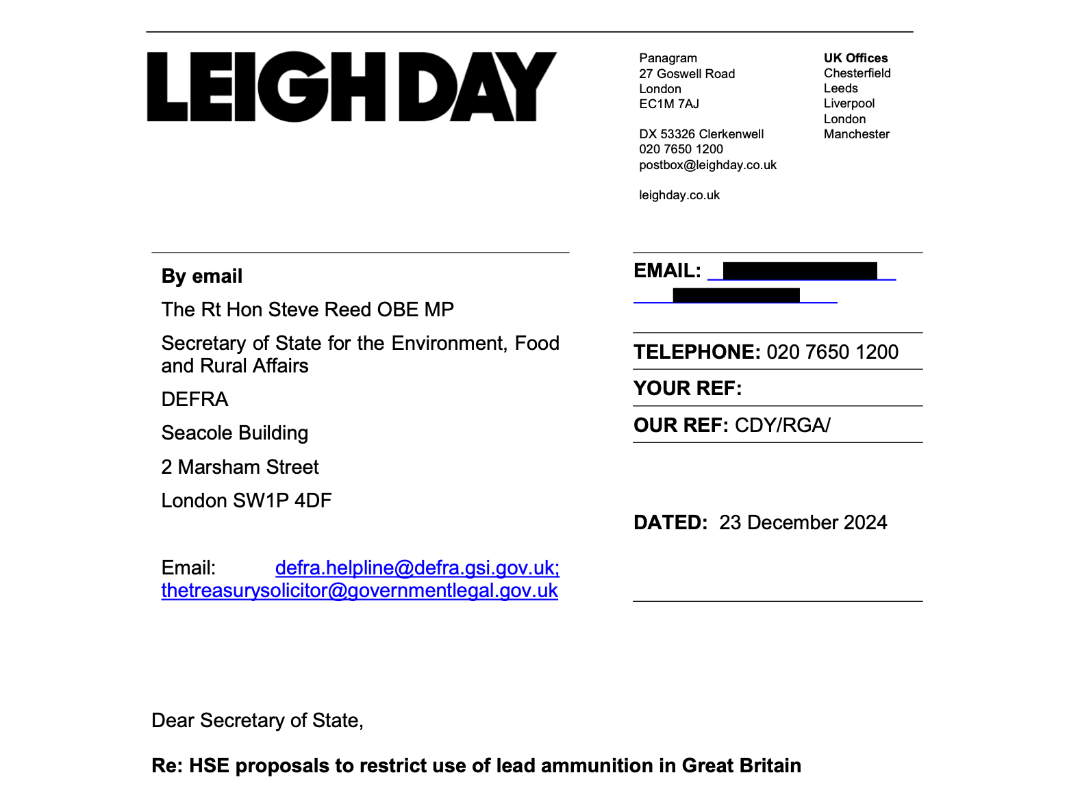 Our letter to Defra about lead ammunition 6th January 2025 At the end of 2024 Wild Justice wrote to Steve Reed MP, the Secretary of State (SoS) for the Environment,… Read more >