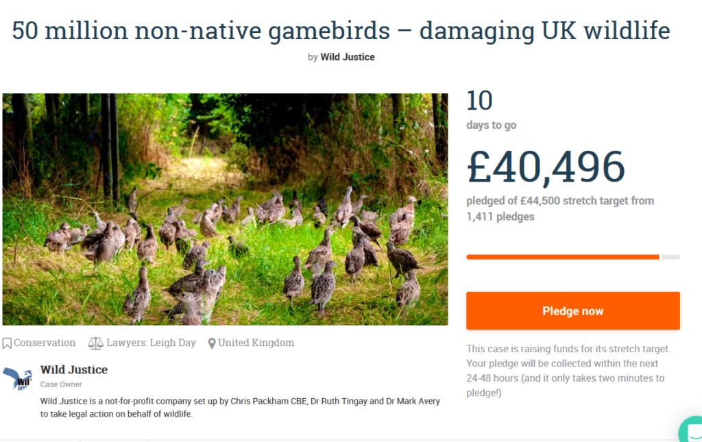 This will allow us to take our legal action all the way through the courts and use the legal system to make Defra review the impacts of unregulated gamebird releases on our wildlife.