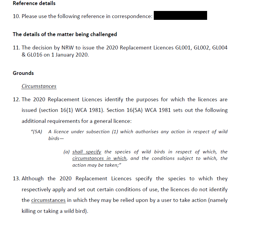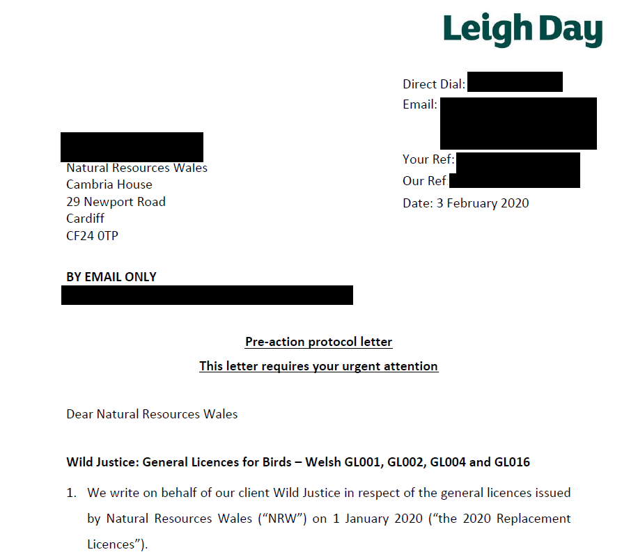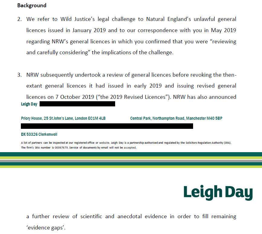 Unless NRW agrees with our legal interpretation then we intend to apply for permission for judicial review of their issuing of general licences. If we do this then we will need to raise funds for such a legal case.