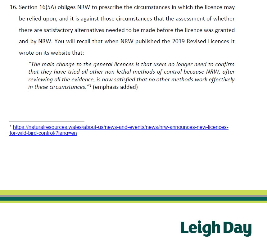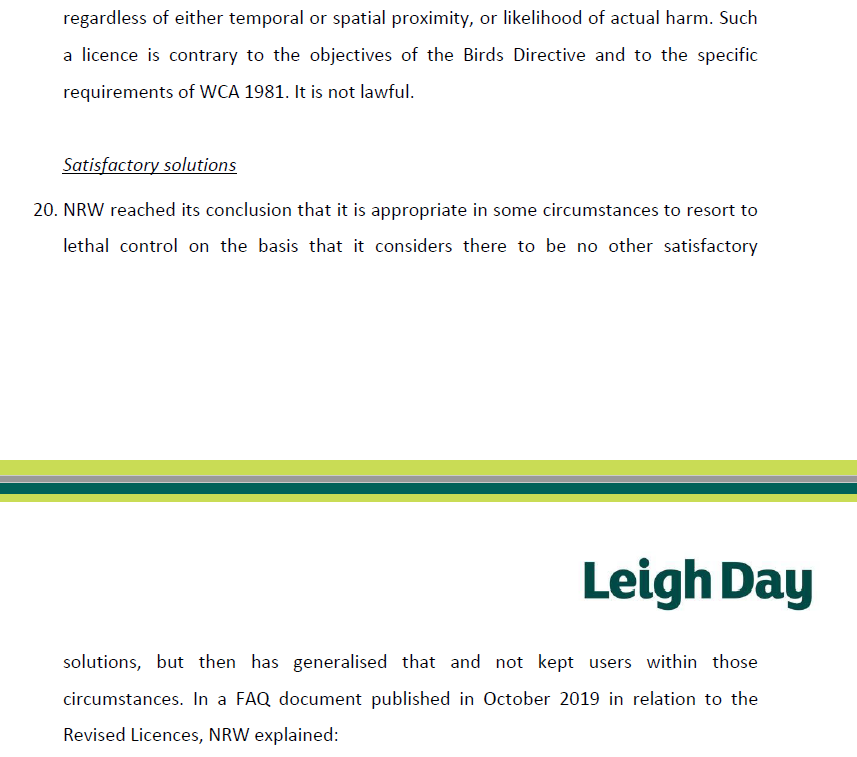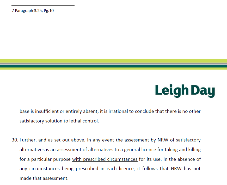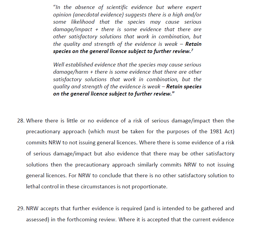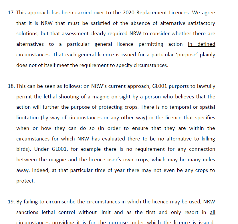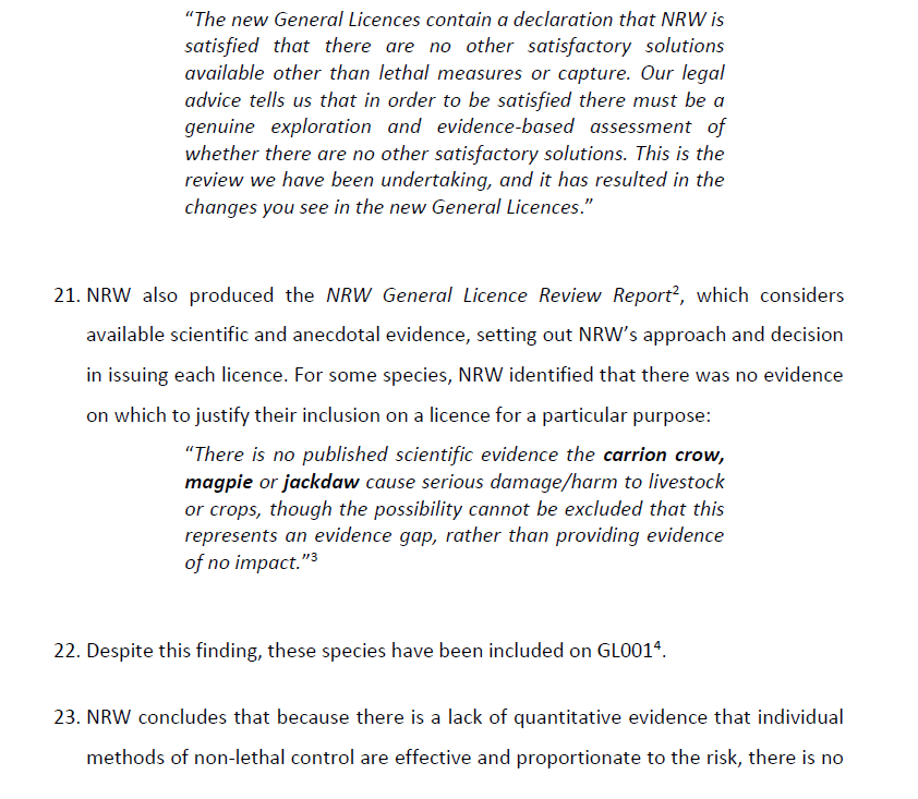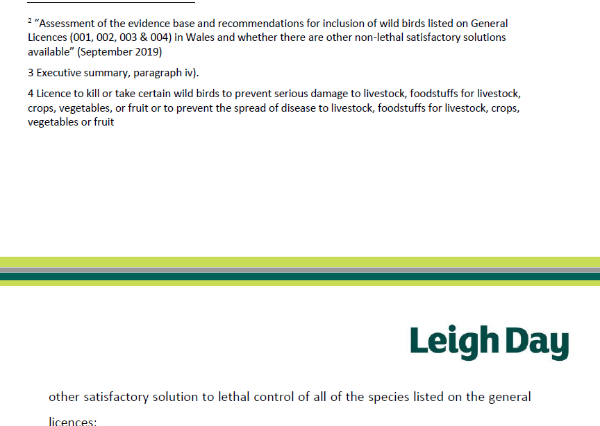 As always, Wild Justice’s main interest is in the general licence which applies to lethal control of birds for so-called conservation purposes but since the legal flaws we have identified with that general licence apply to all the general licences issued by NRW then there is little point in trying to differentiate between them. The farming industry should reflect on that.