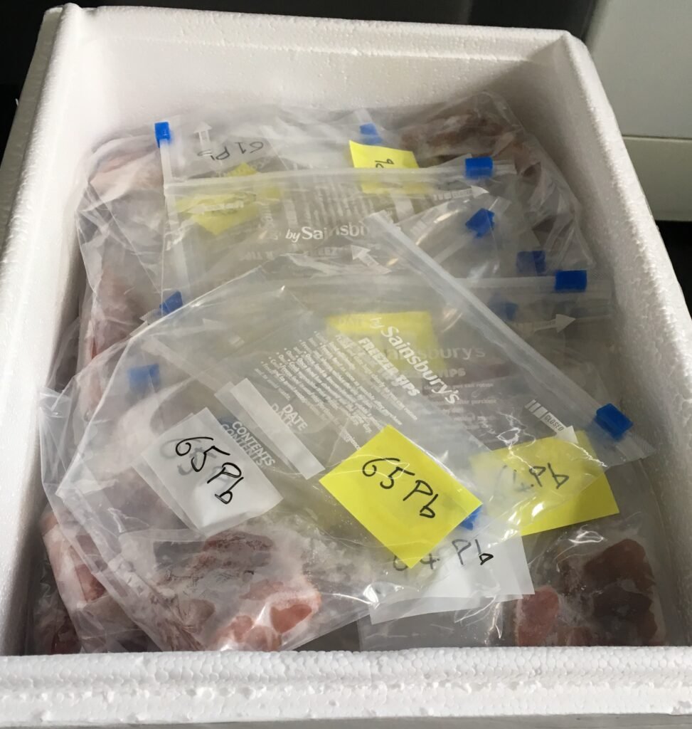 Over the last month we’ve bought some of those pheasant breasts and mixed-game casseroles from various Sainsbury’s stores and have prepared a series of samples using a rigorously-scientific process. These samples have just been shipped to a specialist laboratory where an experienced scientist will examine them to determine whether they contain any toxic lead ammunition and if so, in what quantities.