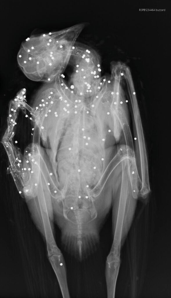 Once the evidence had been seized, various forensic tests needed to be considered. Firstly, using the Raptor Forensics Fund, the six buzzards went for screening x-rays at a local vet which clearly indicated they had all been shot. With this information, the birds were sent for a post mortem examination at Scotland’s Rural College (SRUC) under the skilled hands of experienced pathologist Fiona Howie. In addition to confirming all had been shot, it also established one of the bodies was very fresh and probably shot within a day of us arriving at the address. Interestingly, this particular bird had survived two previous shooting incidents.