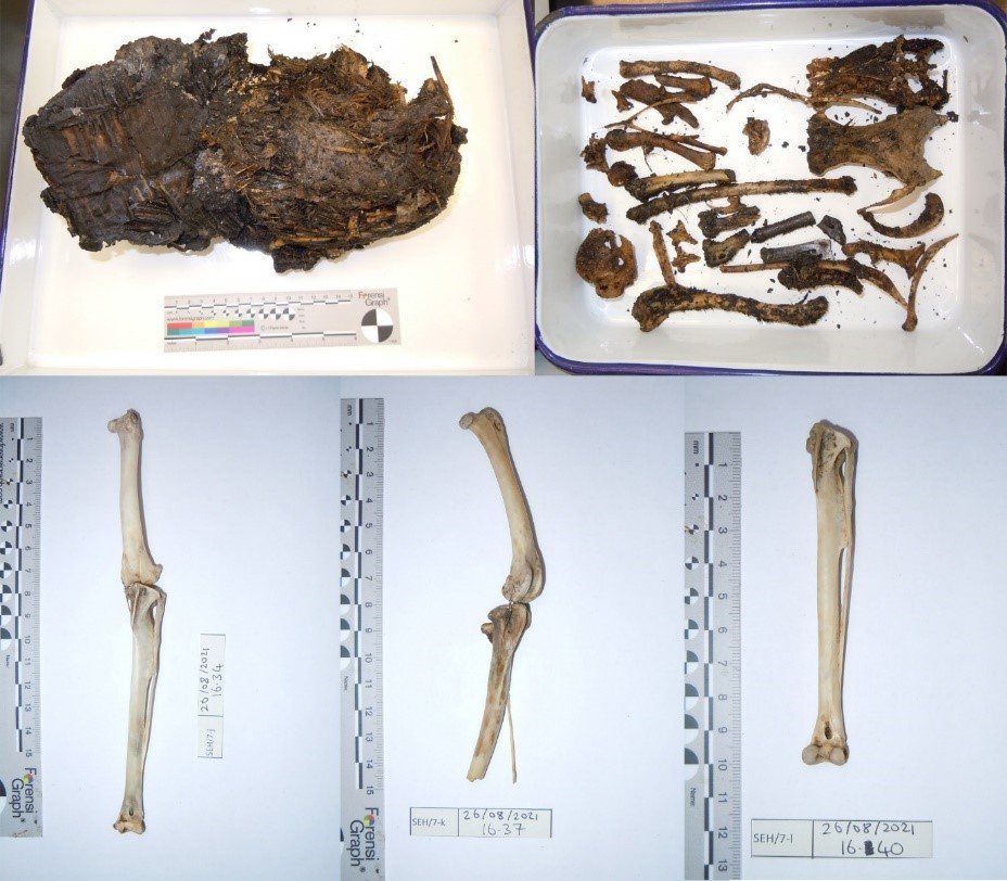 We were obviously interested in what was in the fire remains and the Raptor Forensics Fund allowed us to submit these to Judith White, a Curator and avian specialist at the Natural History Museum. When I attended to collect them, they had been cleaned and neatly divided into 34 individual exhibit bags. The examination had confirmed there were the remains of at least three further buzzards from within the ashes. So, using nearly £900 from the Raptor Forensics Fund, these three examinations had produced some powerful evidence.